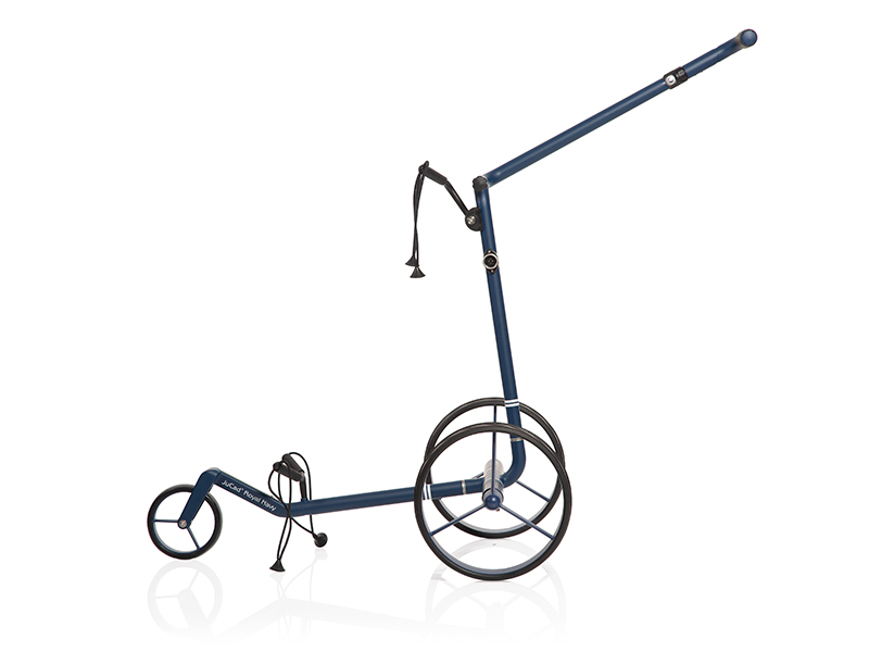 Carbon Travel Royal Navy nadchne svou sytou, ušlechtilou matně modrou barvou s bílými pruhy – elegantní a silný pro stylový výkon. Speciální model však nevyniká pouze vizuálně. I po technické stránce slibuje Royal Navy s hmotností pouhých 5,8 kg a dvěma výkonnými motory čistou radost z jízdy. Díky extrémně stabilnímu celokarbonovému rámu, který jsme speciálně navrhli pro vysoké nároky golfového hřiště, nabízí vozík i přes svou nízkou hmotnost absolutní stabilitu. Balíček inteligentních technologií poskytuje komfort navíc a zahrnuje tiché bezkartáčové motory s elektronickou parkovací brzdou na obou stranách pro bezpečné zastavení i na nejstrmějším terénu a také magnetické zástrčky, integrovaný indikátor stavu nabití a NOVINKU – Slope Balance Control (SBC®) pro optimální kompenzaci svahu, aby vozík neustále držel stopu. Vozík JuCad Royal Navy 3.0 má ve složeném stavu rozměry pouhých 65 × 35 × 15 cm a je ideálním společníkem na cesty. Lze jej společně s golfovým bagem sbalit do cestovního obalu a cestovat pouze s jedním zavazadlem. Díky rukojeti plynu pro plynulé ovládání, automatické funkci jízdy vpřed a vzad a tichému stálému pohonu obou kol je každé kolo golfu potěšením. Vozík JuCad Carbon Travel Royal Navy 3.0 je volitelně k dispozici s dálkovým ovládáním JuCad, které vám ušetří spoustu chození a umožní vám plně se soustředit na hru.