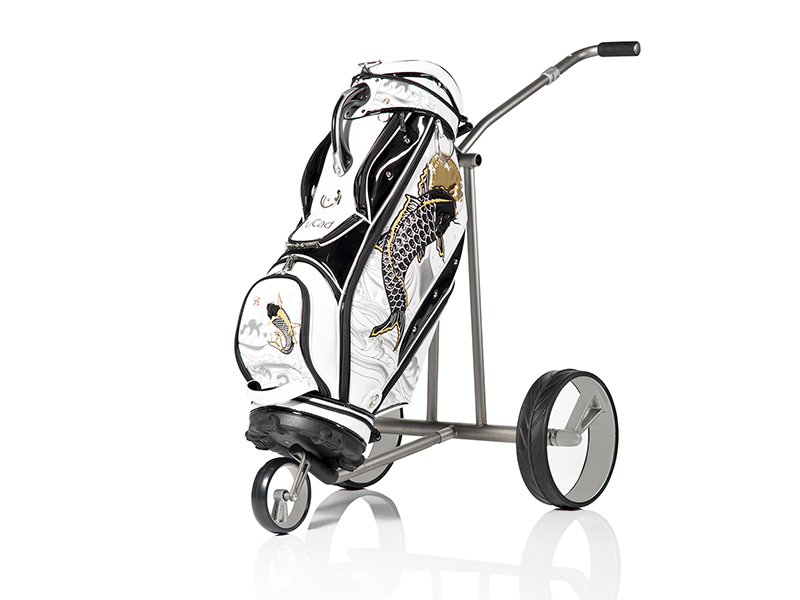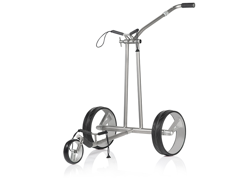 Wie ein Phantom gleitet dieser JuCad Titan-Elektrocaddy auf seinen unvergleichlichen Design-Felgen über das Fairway. Die eleganten Einspeichenfelgen aus Vollcarbon des JuCad Phantom Titan eX 2.0 sind schon eine Sensation für sich. Mit diesen Felgen und dem schlanken Titanrahmen, hervorgehoben durch die bekannte Einarmschwinge am Vorderrad und der eleganten Griffstange mit stufenlosem Geschwindigkeitsregler, wirkt der Caddy wie eine schwebende Erscheinung. Das intelligente Technikpaket sorgt für optimalen Komfort und beinhaltet leise Brushless Motoren mit einer beidseitigen Parkbremse für sicheren Halt auf steilstem Gelände sowie Magnetstecker und eine integrierte Ladestandsanzeige. Dank seiner komfortablen Falttechnik wird der Caddy in Sekundenschnelle auf ein superflaches Packmaß gebracht und verstaut. Höchsten Fahrkomfort bieten der hochfeste Titanrahmen, das kraftvolle und leise 48V Antriebssystem mit den Funktionen Vorwärts, Rückwärts, Neutral und automatischer Vorlauf sowie die Fernsteuerung. Ein besonderes Highlight ist auch das JuCad Powerlock-System, das gleichzeitig die Fixierung der oberen Baghalterung sowie der Griffstange ermöglicht. Der JuCad Phantom Titan eX 2.0 wird inklusive einer praktischen Tragetasche mit separatem Räderbeutel und der bewährten JuCad Fernsteuerung geliefert.