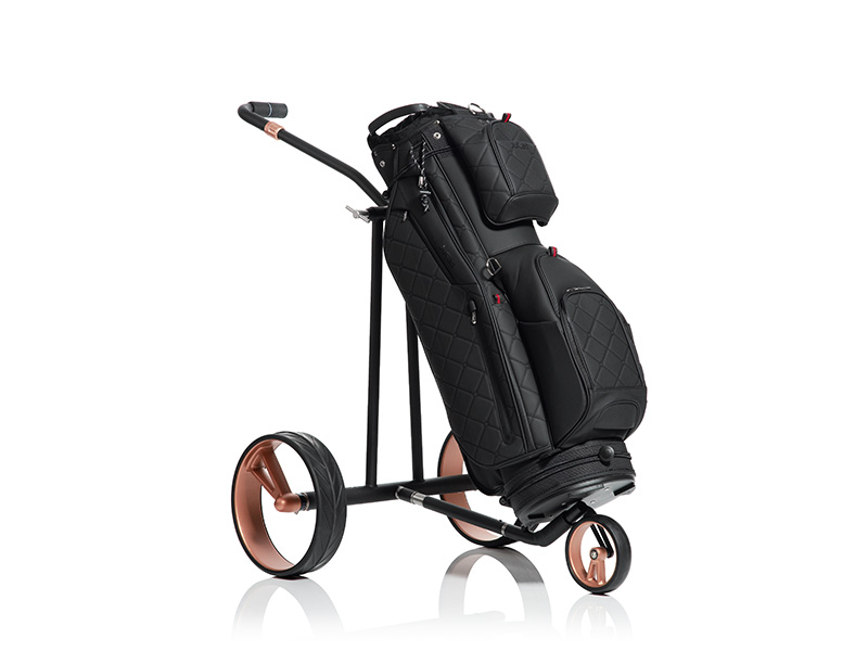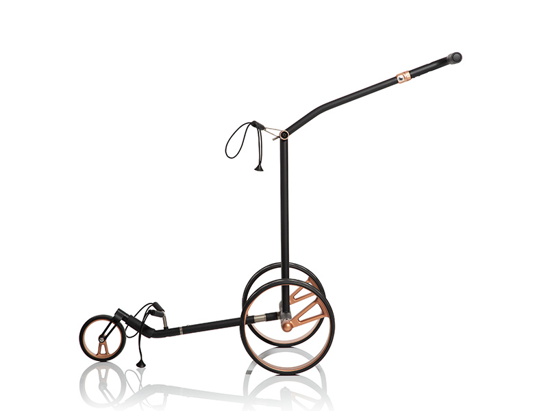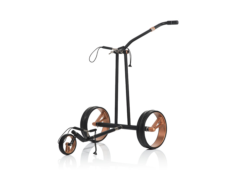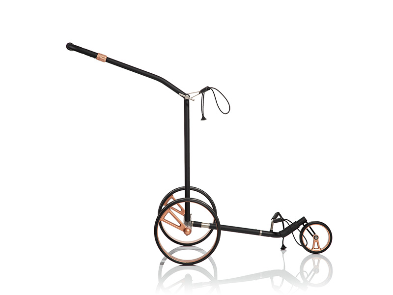Matt black meets rose gold – a statement of elegance and strength. Finished in a classic matt black with finely shimmering details in a rose gold effect, this this titanium electric trolley embodies pure exclusivity. It glides like a ghost across the fairways with its incomparable single-spoke rims made from full carbon fibre – the luxurious colour composition of matt deep black and delicate rose gold creates an interplay of light and shadow that perfectly combines understatement and extravagance.