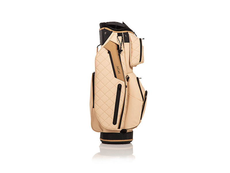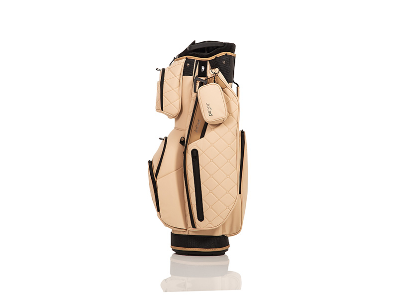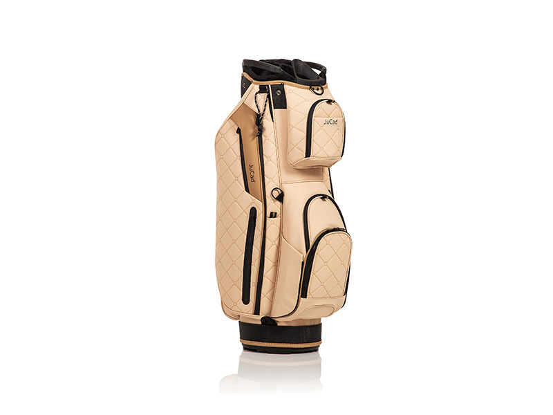 Esta bolsa de primera clase con su elaborado exterior acolchado de aspecto retro y la superficie repelente al agua en diseño de cuero, de tacto agradable, tiene muchas funciones. Los dos bolsillos exteriores delanteros se utilizan rápida y fácilmente con cierres magnéticos. El compartimento del bolsillo superior con cierre magnético garantiza un acceso superrápido (p. ej., para el telémetro) y también se puede desmontar mediante un velcro y hacer desaparecer las fijaciones de la bolsa por debajo. Además, el amplio compartimento para bebidas es de acceso muy rápido gracias al cierre magnético. Los objetos de valor se guardan en un bolsillo interior con cremallera y se pueden asegurar con un candado, mientras que muchos otros compartimentos para accesorios facilitan el uso durante el juego.