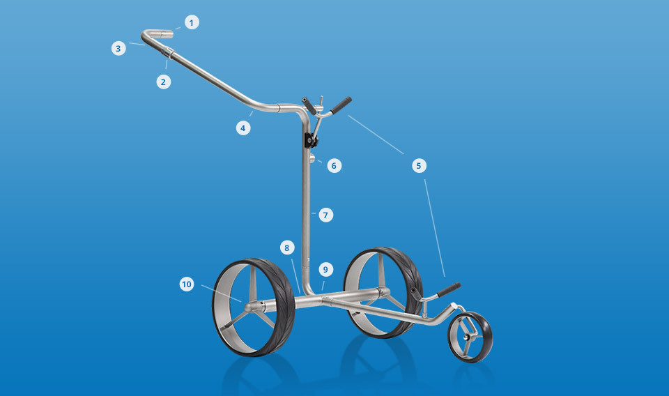 Nuestros modelos de viaje Travel impresionan por su tamaño mini del paquete. Gracias a los conectores de viaje adicionales, se reducen las dimensiones de transporte a un mínimo de 65x35x15 cm. Los modelos eléctricos Travel caben hasta en el maletero más pequeño de un coche deportivo y también se pueden guardar junto con la bolsa de golf en la funda de viaje Travelcover.