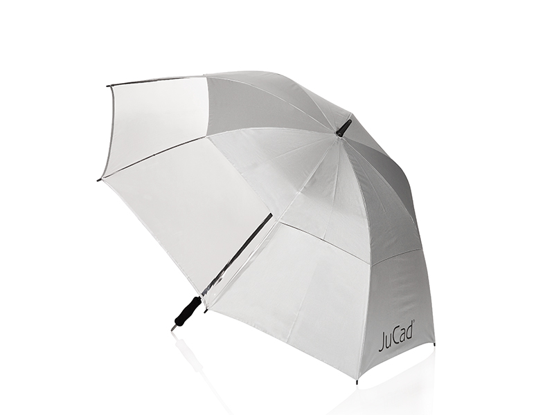 Este paraguas Windproof, con protección adicional contra el viento, permite una visión completa gracias a su ventana transparente e incluye pasador de paraguas para fijar en su carro JuCad. Diámetro del paraguas: 140 cm.